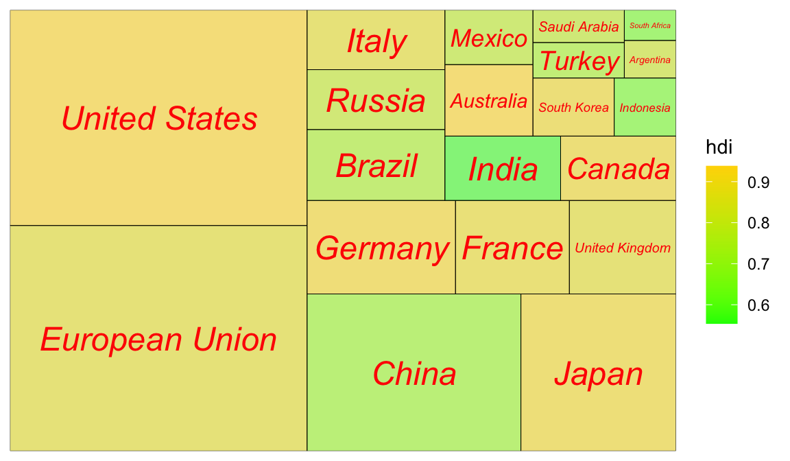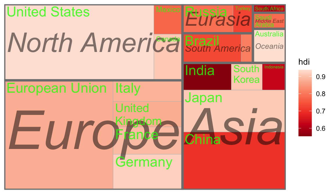 ggplot(G20, aes(area = gdp_mil_usd, fill = hdi, label = country,subgroup = region)) +