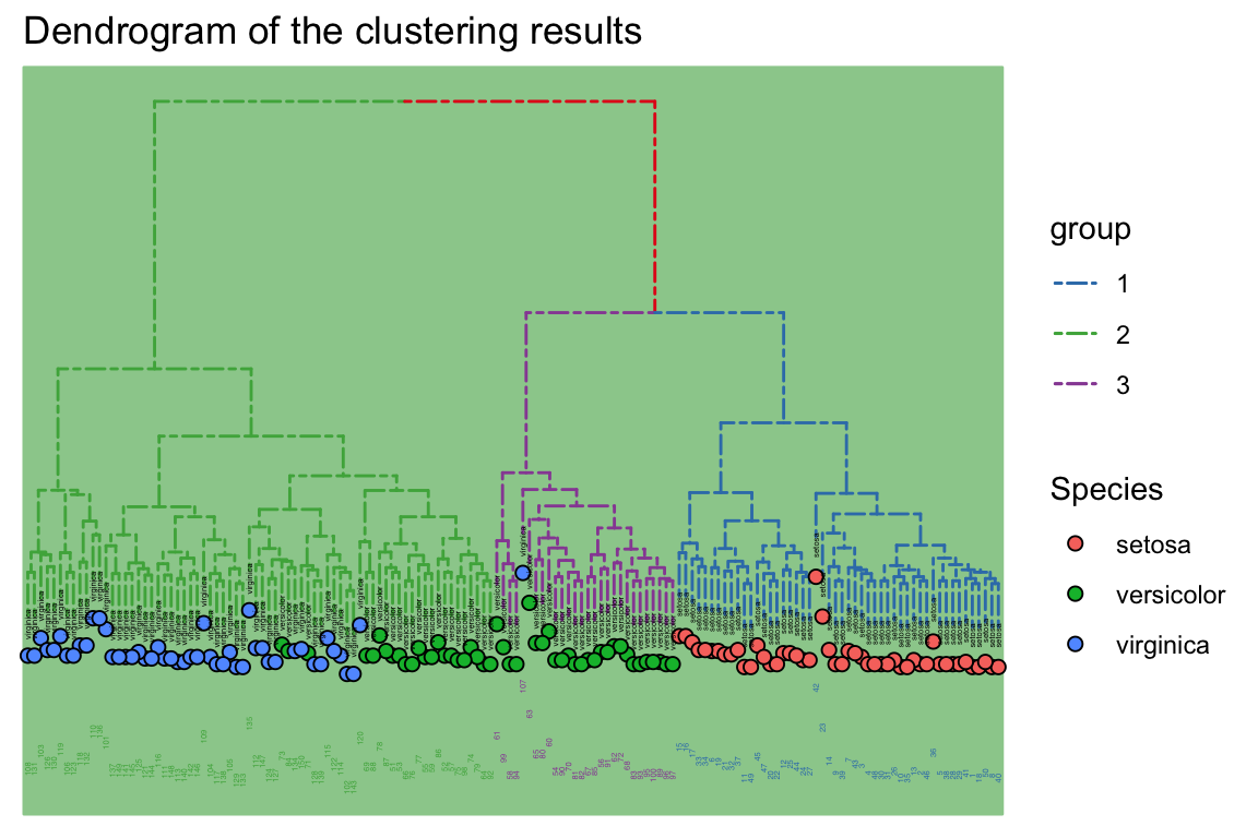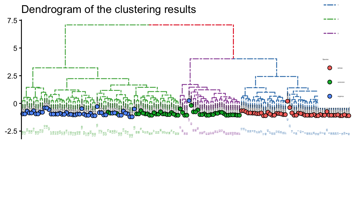 Species = iris[,"Species"])- layout_dendrogram() to layout the tree top-down, and theme_dendrogram() to display tree height.
